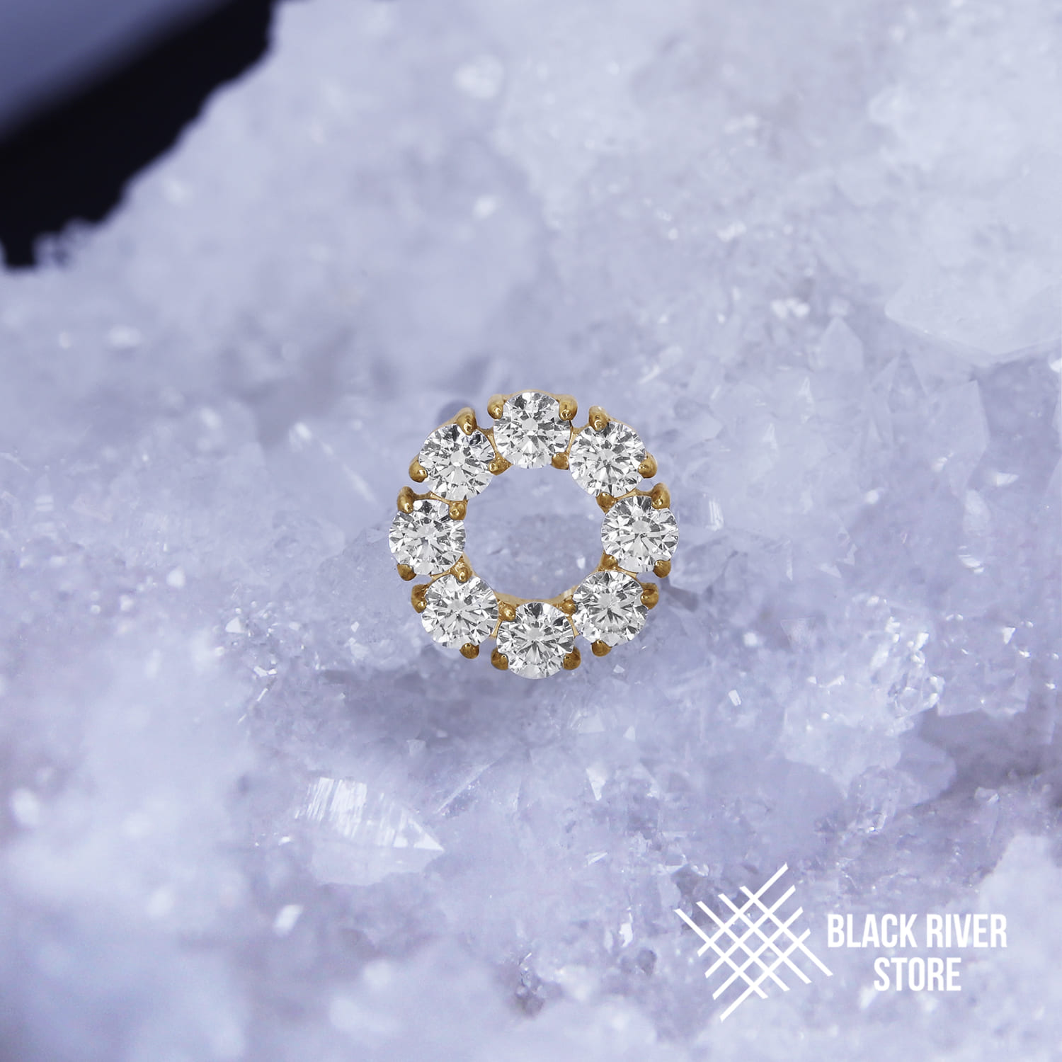 Титановая накрутка в форме контурного круга с прозрачными фианитами и PVD покрытием золотистого цвета (под желтое золото)