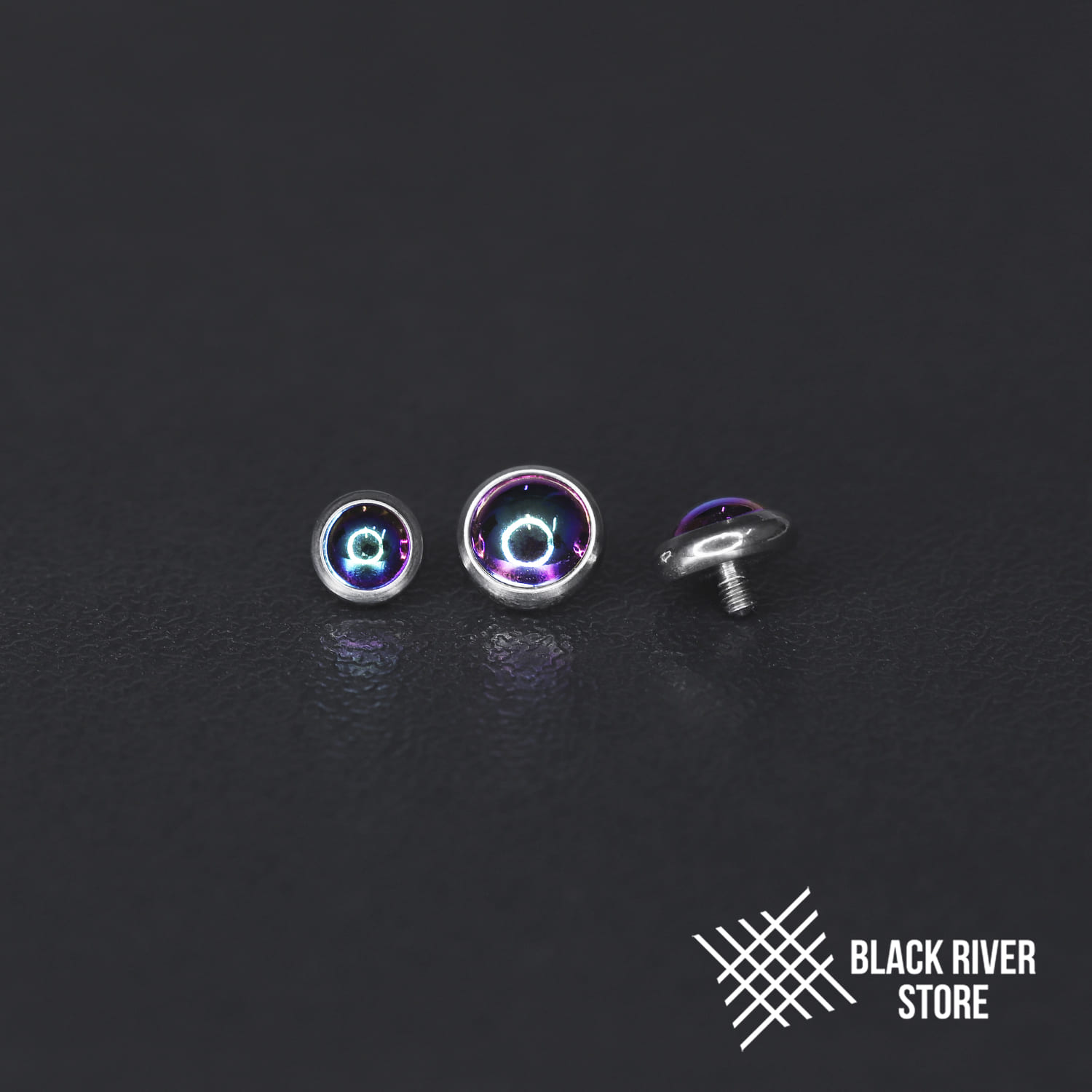 Титановая плоская накрутка с кабошоном SW цвета побежалости