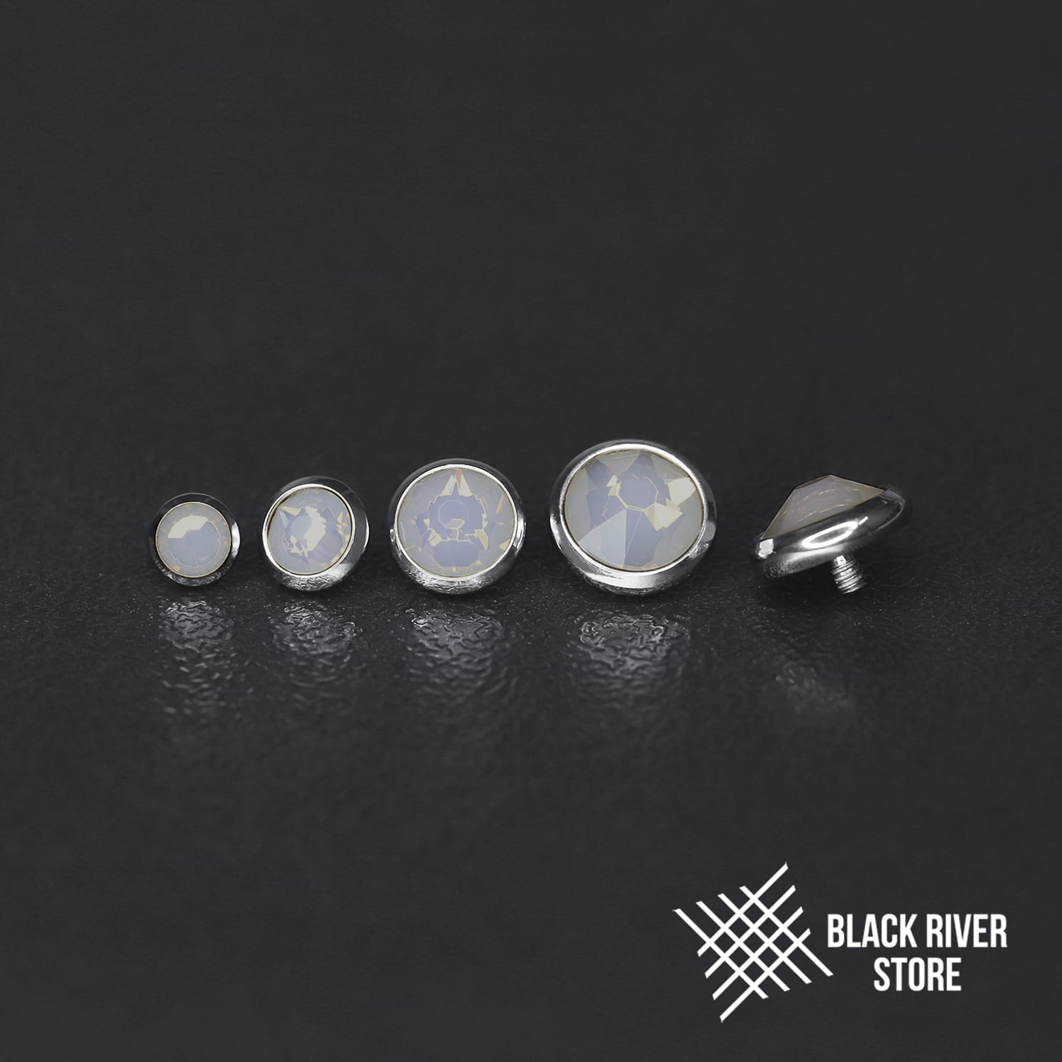 Титановая плоская накрутка с белым матовым стразом SW