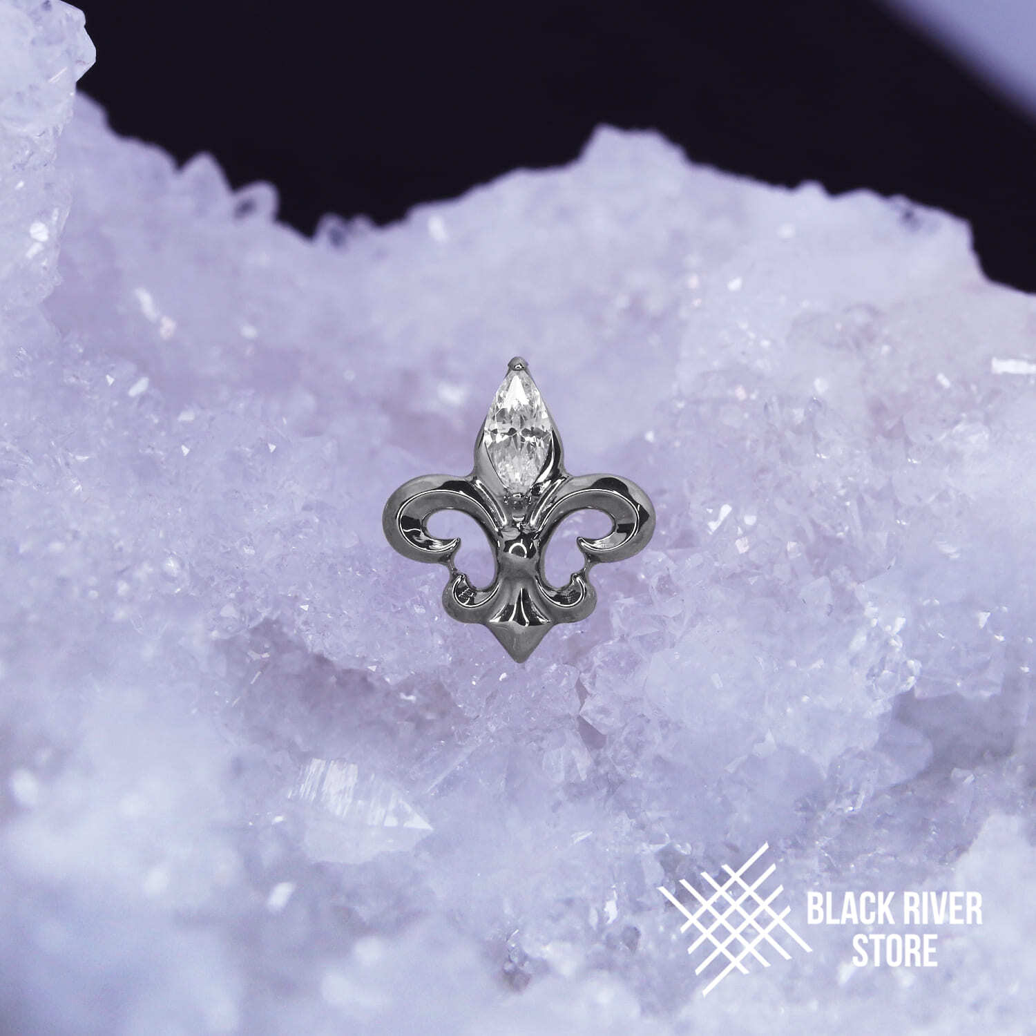 Титановая накрутка в форме геральдической лилии с прозрачным фианитом