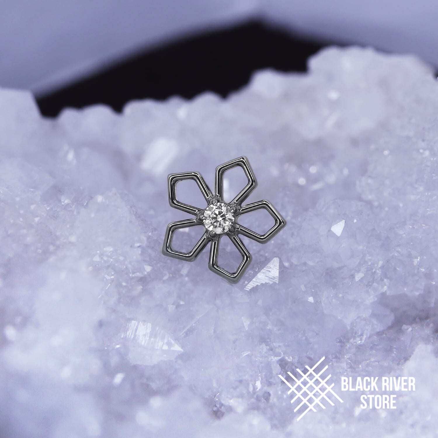 Титановая накрутка в форме цветка с прозрачным фианитом
