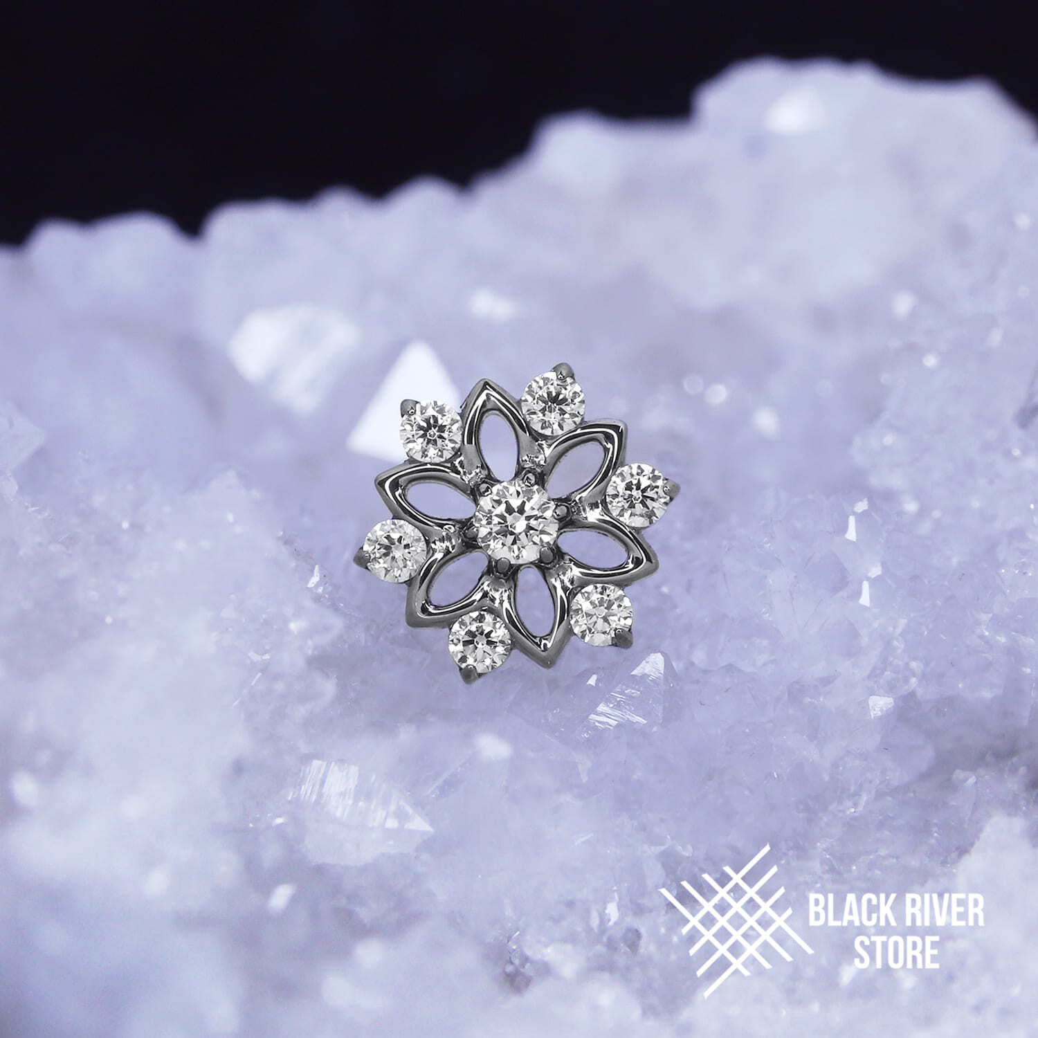 Титановая накрутка в форме цветка с прозрачными фианитами